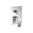 Trims - The trims comprise of a well finished cover plate and handle knobs. Over the temperature control knob, is an anti-scald temperature stop ring which is a safety feature in this thermostatic value. With the help of this ring, temperature of the water is regulated. Covering this ring is the temperature handle knob which has a push button on the side. To adjust the water temperature, one needs to press this button and move the handle to hot or cold direction. Without pressing it, the user will not be able to rotate the handle to the full HOT position – as an anti-scald prevention mechanism. The anti-scald temperature stop ring should be fitted tightly over the valve (tapping using a rubber mallet might be required) for it to function properly.