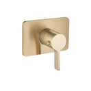 Trims - The trims comprise of well finished trim plate and handle. The trim plate is used to cover the wall and has markings for HOT/COLD for temperature control handle. Over the temperature control knob, is an anti-scald temperature stop ring which is a safety feature in this thermostatic value. With the help of this ring, temperature of the water is regulated. Covering this ring is the handle knob which has a push button on the side. To adjust the water temperature, one needs to press this button and move the handle to hot or cold direction. Without pressing it, the user will not be able to rotate the handle to the full HOT position – as an anti-scald prevention mechanism. The anti-scald temperature stop ring should be fitted tightly over the valve (tapping using a rubber mallet might be required during installation) for it to function properly.