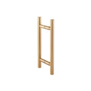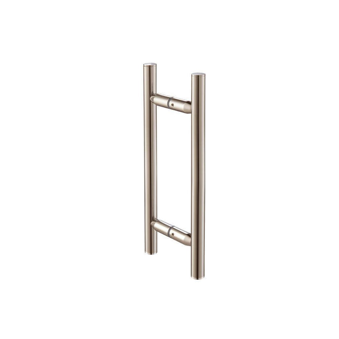 Flusso's shower door handles are made of brass and are designed to affix to a frameless shower door. These shower door pull handles are designed for back-to-back mounting, utilizing the provided through bolts, suitable for glass thicknesses of 3/8" to 1/2" (10 to 12 mm).