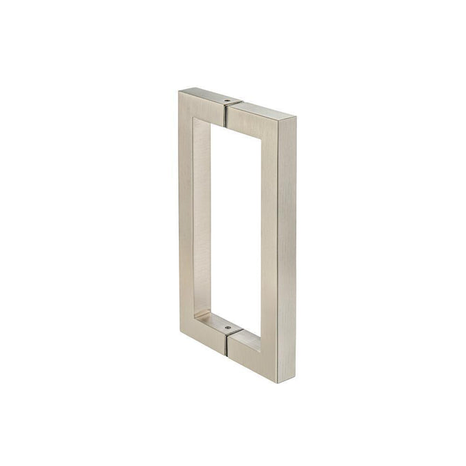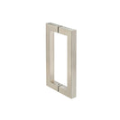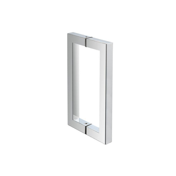 Flusso's shower door handles are made of brass and are designed to affix to a frameless shower door. These shower door pull handles are designed for back-to-back mounting, utilizing the provided through bolts, suitable for glass thicknesses of 3/8" to 1/2" (10 to 12 mm).