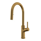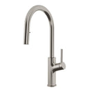 • Single-handle kitchen faucet with ergonomic hidden pull-down spray