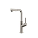 • Single-handle kitchen faucet with ergonomic hidden pull-down spray