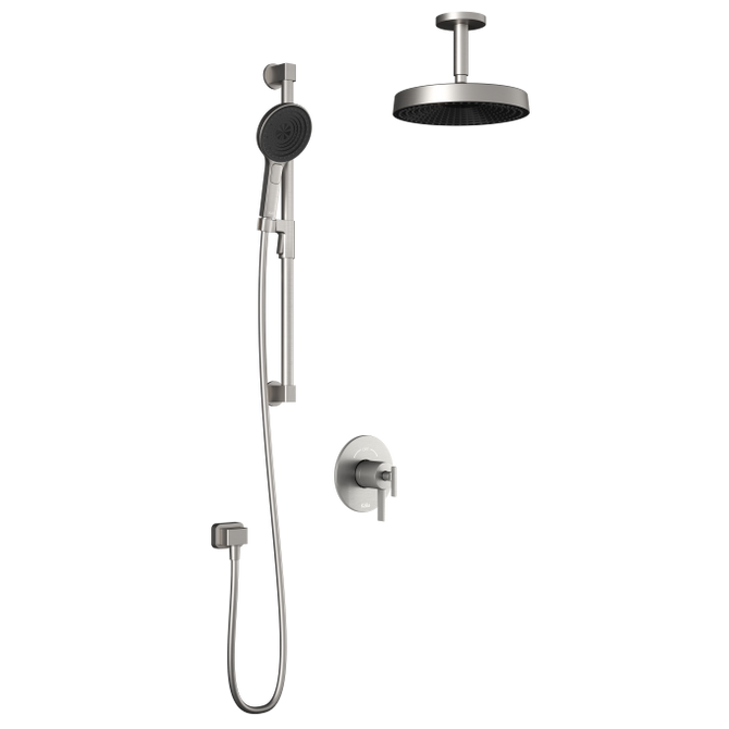 • Complete kit with: 2-way AQUATONIK™ type T/P 1/2” coaxial valve with diverter (2 direct positions, 1 shared position and 1 closed position) 104809