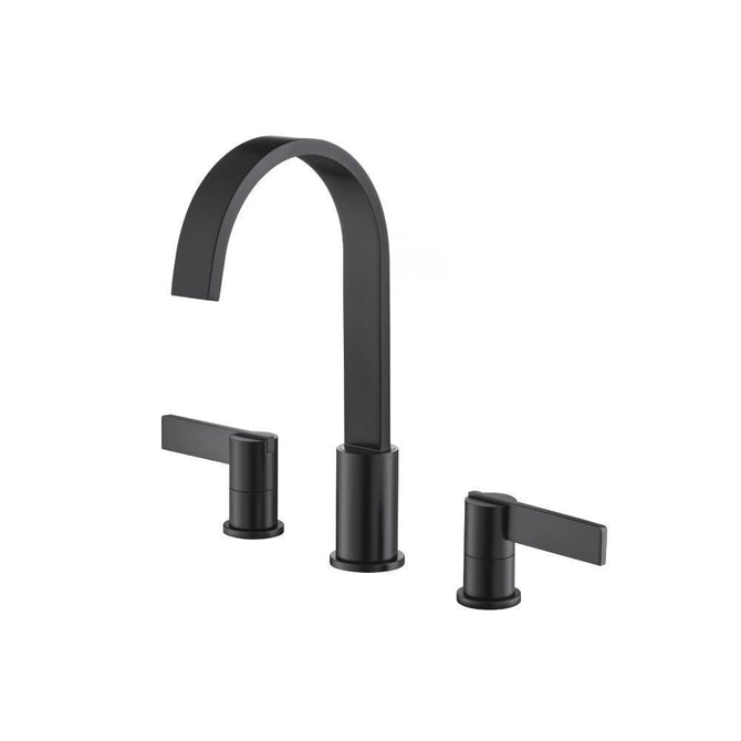Flusso 8″ Widespread faucets have a separate hot and cold handle and are used on sinks and countertops with 3 pre-drilled holes that are each approximately 4 inches apart. The faucet body and handles are all separate pieces with volume control valves concealed under the sink. Flusso three-hole faucets are constructed from solid brass. Each handle has a ¼ turn operation. Flusso 8” Widespread faucets are constructed of solid brass and come with a pop-up drain with overflow.