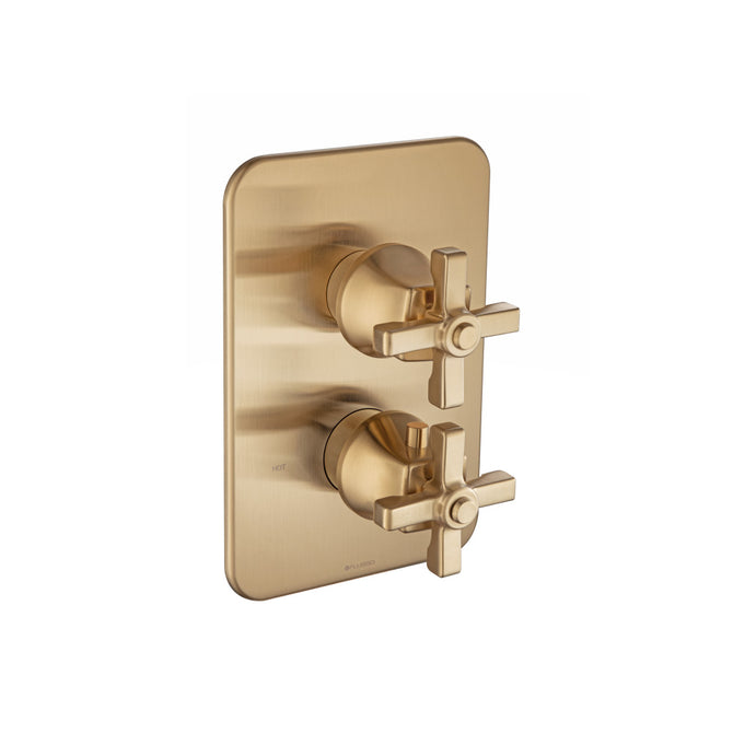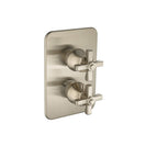 Trims - The trims comprise of a well finished cover plate and handle knobs constructed in solid Brass. Over the temperature control knob, is an anti-scald temperature stop ring which is a safety feature in this thermostatic value. With the help of this ring, temperature of the water is regulated. Covering this ring is the temperature handle knob which has a push button on the side. In order to adjust the water temperature, one needs to press this button and move the handle to hot or cold direction. Without pressing it, the user will not be able to rotate the handle to the full HOT position – as an anti-scald prevention mechanism. The anti-scald temperature stop ring should be fitted tightly over the valve (tapping using a rubber mallet might be required) for it to function properly.